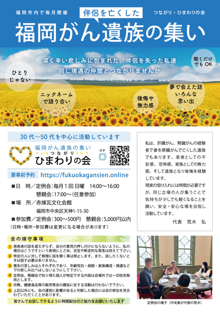 当会の参加者は、がん遺族の経験者です。